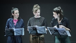 Tři herečky – vokalistky střídají litanický zpěv, skandovaná hesla, ironické glosy, naštvané výkřiky a tichý žal. Jejich strhující energii sekundují hudební vstupy živé kapely.